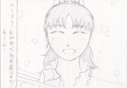 「魔法少女☆くくち」改め「豆腐少女くくち☆ヘースケ」のイラスト共に、前に授業中に描いた