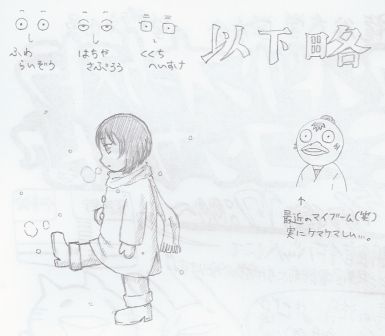 では、これより下は昨日言っていた、帰省先での落書きです。