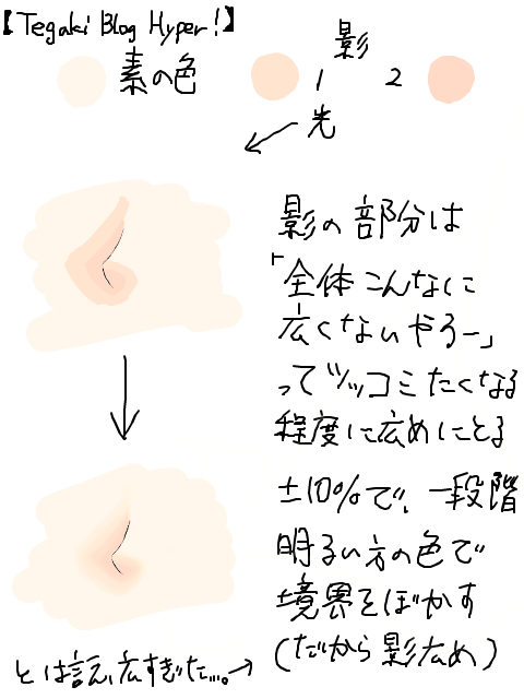 まぁ、第2段階で明るい色を塗りすぎたな、と思ったら、影のほうを±10%で増やしたり…。