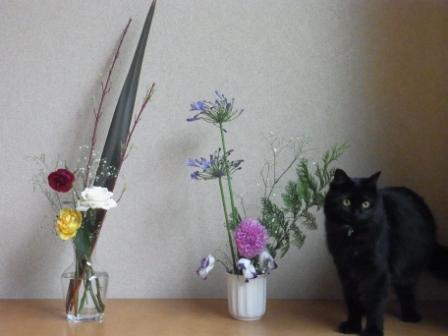 写真は、「昨日の部活で持ち帰った花を花瓶に生けてやったぜ、こんにゃろー&ちゃこ」の図。