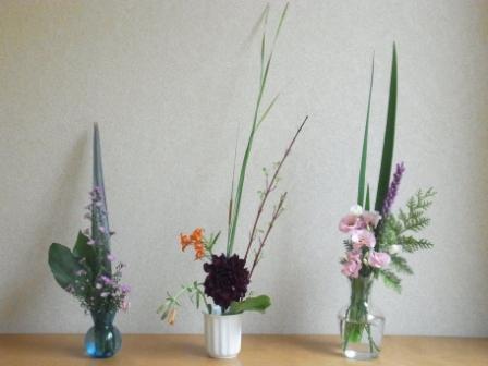 という訳で、前回7月6日に生けた花(写真左)と、翌日自宅で生けなおしたもの(同右)です。